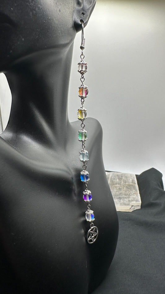 Rainbow Aura Quartz-Aura Cleanse, Emotional Healing & Grounding Long Hook Earrings (Choose Star)