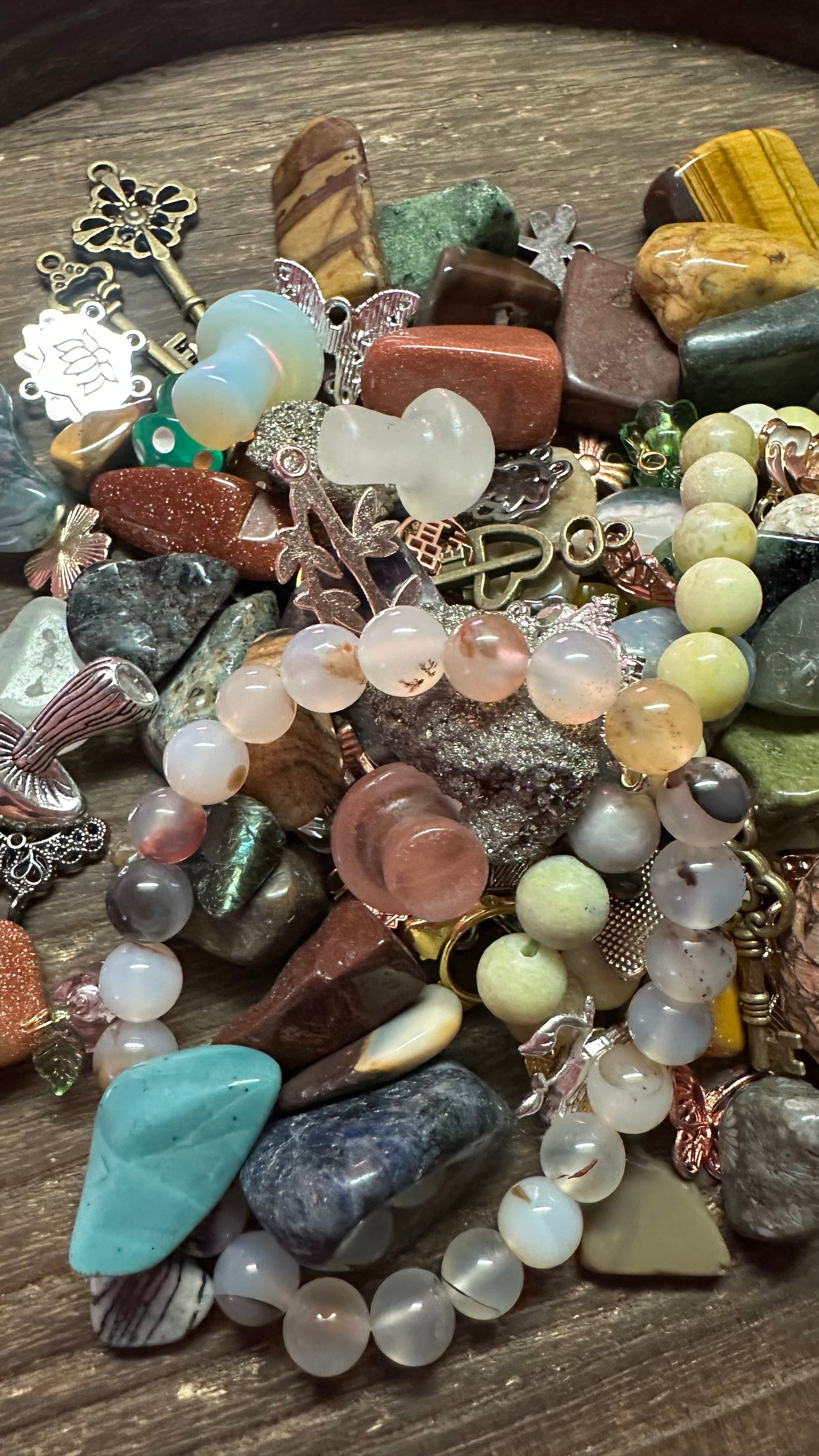 Scoops contain bracelet as well, I will add a free gift to every order, each one is so fun to sort through and find treasures!! Lots of crystals and a ton of charms!