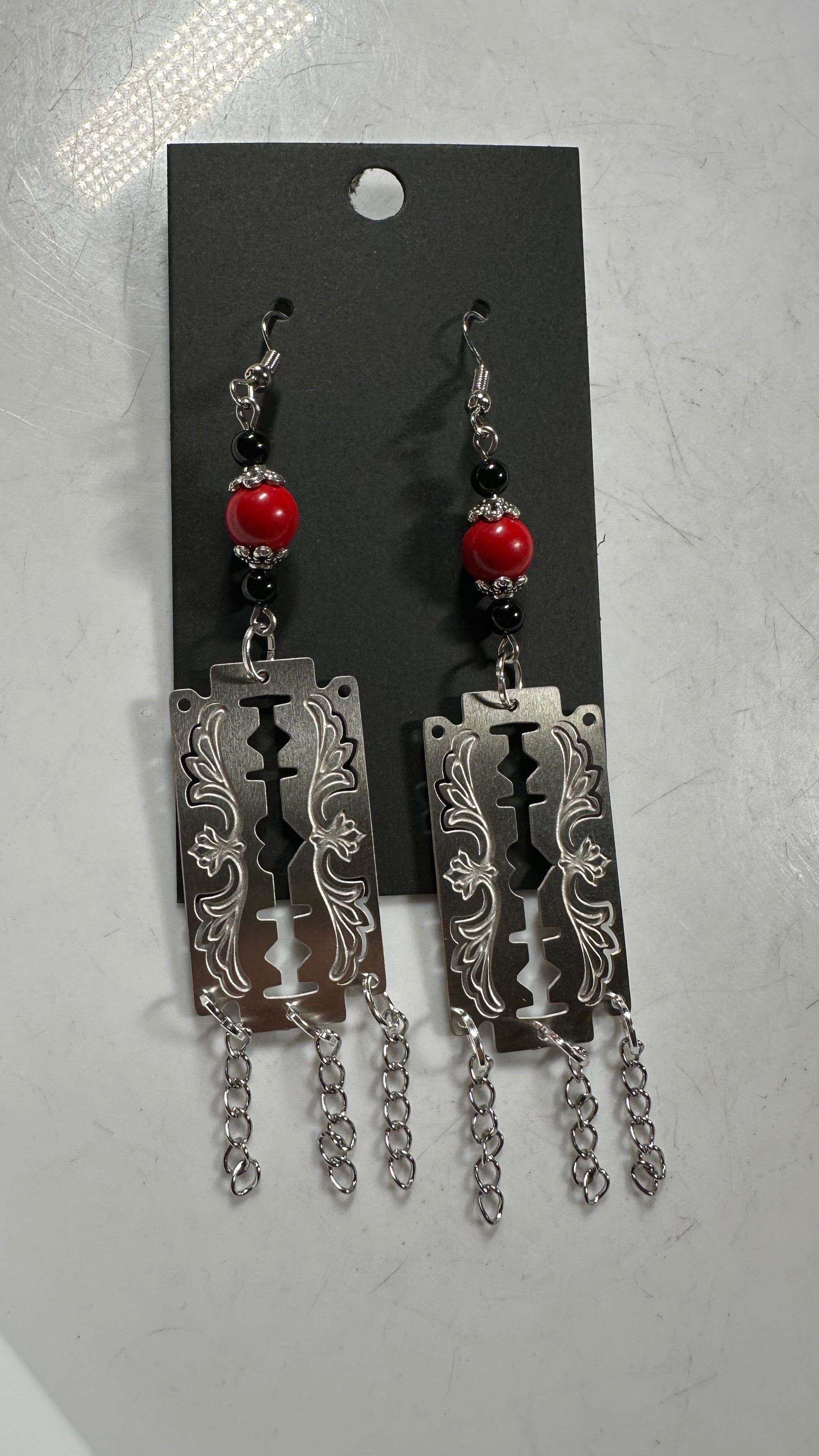 Razor Cut Cinninbar and Black Tourmaline Earrings